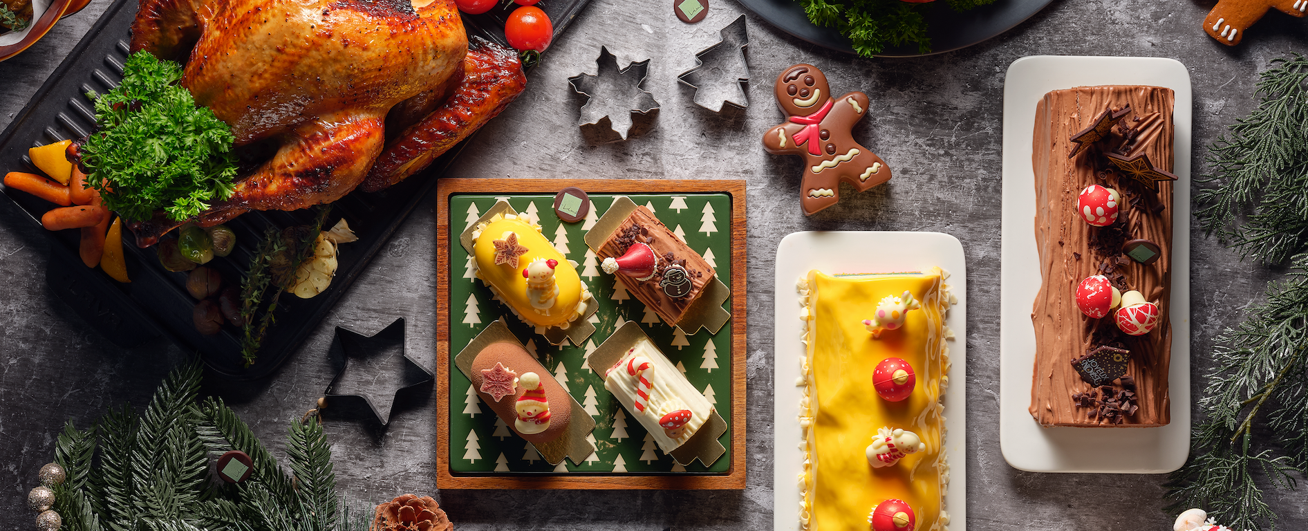 As for dessert, the variety of sweet treats on offer will not disappoint you, especially with their array of Christmas confections. Highlights include their selection of Yule log cakes, namely the strawberry chiffon, the chocolate passion fruit, the rainbow durian (with a layered rainbow cake inside) and black forest. Each one comes in bite-sized servings, each one moist, soft and flavourful. Other options include crème brûlée and a selection of ice cream, with flavours such as gula melaka or even coconut kaffir lime sorbet, before ending the meal with a hot coffee or tea.
