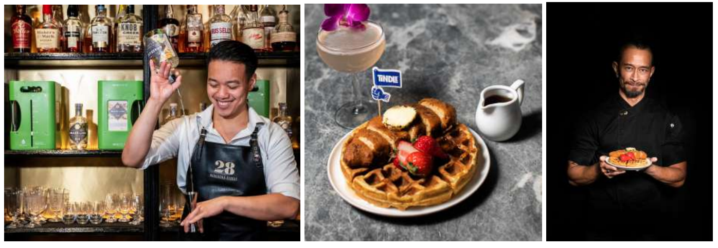 The April edition of 28 HongKong Street’s Proper Dinner series will feature Chef Melvyn Tan’s TiNDLE spin on the bar’s iconic Fried Chicken n’ Waffles topped with homemade herb butter. Chef Mel makes everything from scratch to create the dish — making this version likely the most sustainable, freshest take on the nostalgic American bar food in Singapore.