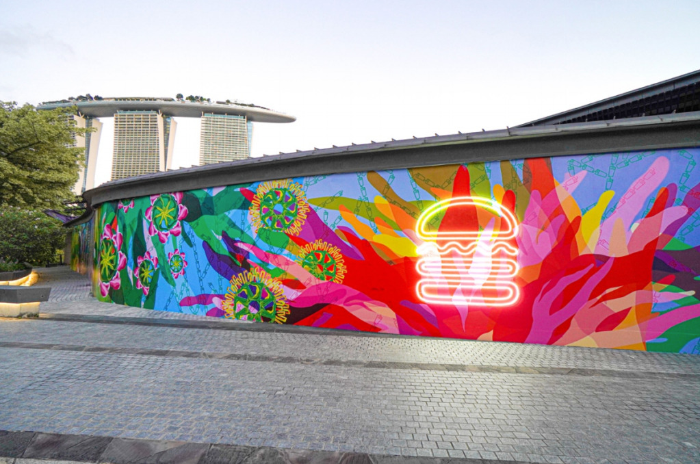 Before the opening, guests can stroll past the newest Shack from today to view soph O’s vivid, abstract construction mural representing the interconnectivity that makes us community. Across the five-sided mural is a continuous kaleidoscope of shapes and colours that are unique and assumed from the vibrant surroundings. The artist cleverly morphs classic Shake Shack icons into plants that are inspired by the gardens, contrasted against an overlay of leaves that together create the perception of land formations — bringing to life the idea of the whole being greater than the sum of its parts. With a blend of sorbet shades and pops of jewel tones, the mural evokes an uplifting mood, like that of endless summers and everlasting blooms at Gardens by the Bay while encapsulating the sheer delight of every Shake Shack experience.
