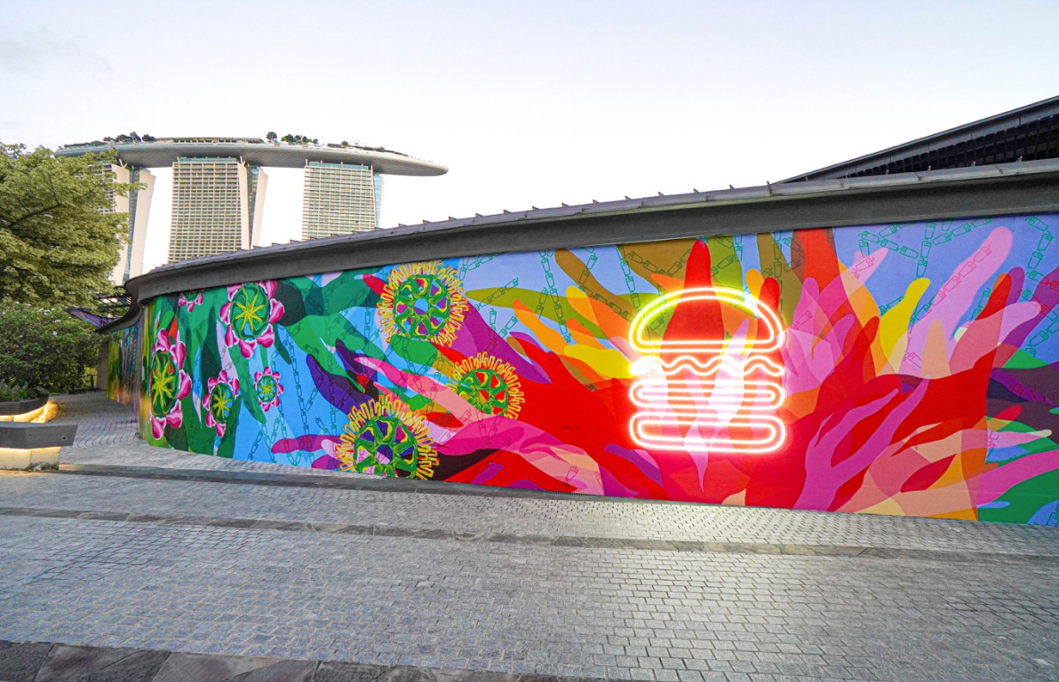 Before the opening, guests can stroll past the newest Shack from today to view soph O’s vivid, abstract construction mural representing the interconnectivity that makes us community. Across the five-sided mural is a continuous kaleidoscope of shapes and colours that are unique and assumed from the vibrant surroundings. The artist cleverly morphs classic Shake Shack icons into plants that are inspired by the gardens, contrasted against an overlay of leaves that together create the perception of land formations — bringing to life the idea of the whole being greater than the sum of its parts. With a blend of sorbet shades and pops of jewel tones, the mural evokes an uplifting mood, like that of endless summers and everlasting blooms at Gardens by the Bay while encapsulating the sheer delight of every Shake Shack experience.