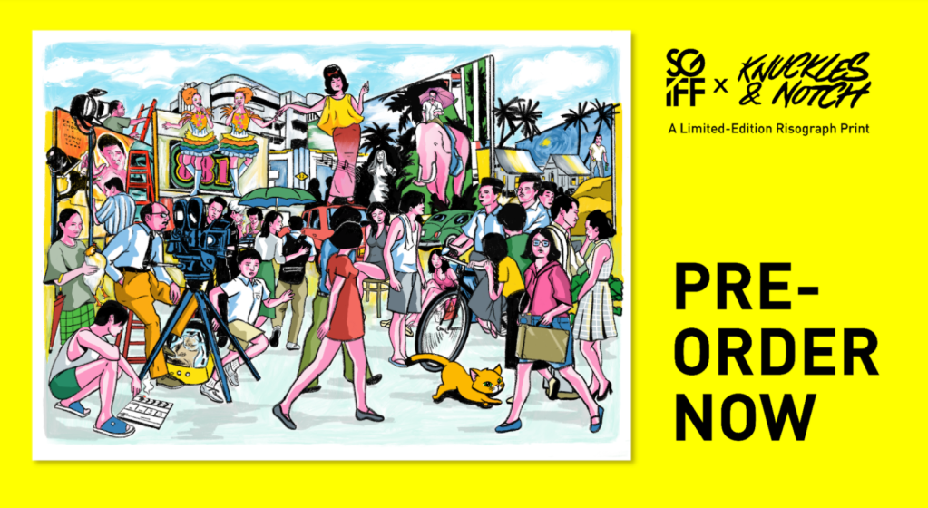 Funds will help SGIFF to continue to bring quality independent films with engaging and inspiring stories to our community and its developmental programmes to nurture the next generation of Singaporean & Southeast Asian storytellers. Now, with every donation of $55 to SGIFF, supporters can support making a difference to cinema and receive a limited edition Knuckles & Notch risograph print inspired by some of the most iconic Southeast Asian films.
