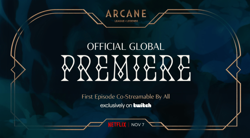 Arcane, Riot’s first TV series, will premiere on Saturday, 6th November at 7PM PT on Netflix globally. Arcane is the first Netflix series to debut with co-streaming exclusively on Twitch. Content creators on the platform will be able to broadcast themselves watching and reacting to episode one.