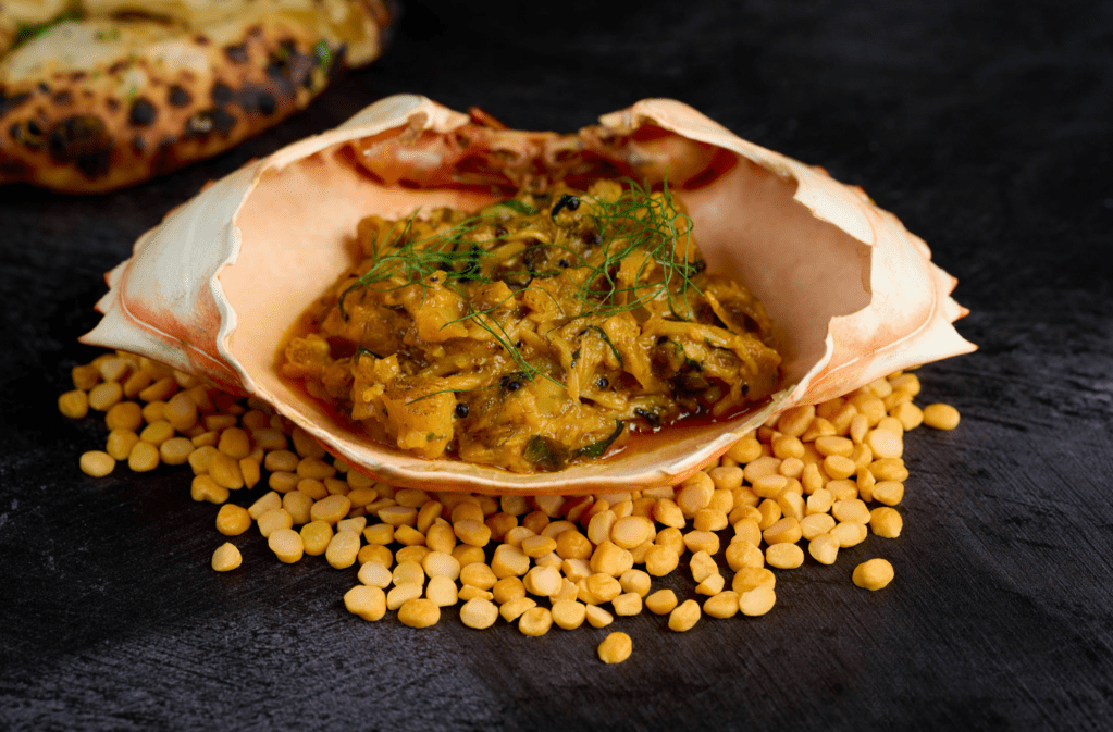 Blending Indian cooking sensibilities, world-class premium produce and carefully selected global spices, all revolving menus by Chef Saurabh Udinia are charred to perfection on the custom-built Woodfired grill, or the beautiful hand-built Tandoor. The menus begin with a new iteration of the much-loved Stuffed Courgette Flowers. This time, the intriguing vegetables are stuffed with spiced potato mash, flavoured with curry leaves and onions; and lightly finished with a mango pickle.