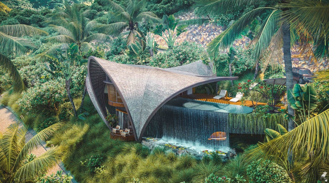 The elegant interiors seamlessly merge into expansive outdoor areas, covering 72 square metres of alfresco space with sun decks and large 46 square metre infinity pools which flow into graceful waterfalls, surrounded by lush foliage and tropical plants. Crafted using natural and sustainable materials, Inspiral villas let every guest stay in style and reconnect with the environment.