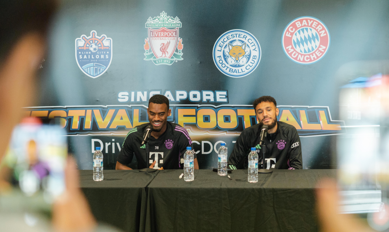 On Monday, FC Bayern Munich full-back Noussair Mazraoui and midfielder Ryan Gravenberch made a special appearance at the Lion City Sailors Training Centre for an exclusive meet and greet session with 25 fans. The players gamely posed for pictures and signed autographs for the awestruck fans. Those present also got to hear from the players about some of the highlights of their football career. FC Bayern Munich are in Singapore for the first time since 2017, and their return has been warmly received by their supporters. On Monday, over 40 fans waited outside FC Bayern Munich’s training ground at the Lion City Sailors Training Centre. Their patience was rewarded, with some of them getting autographs from the likes of Matthijs de Ligt, Alphonso Davies and new signing Kim Min-jae.