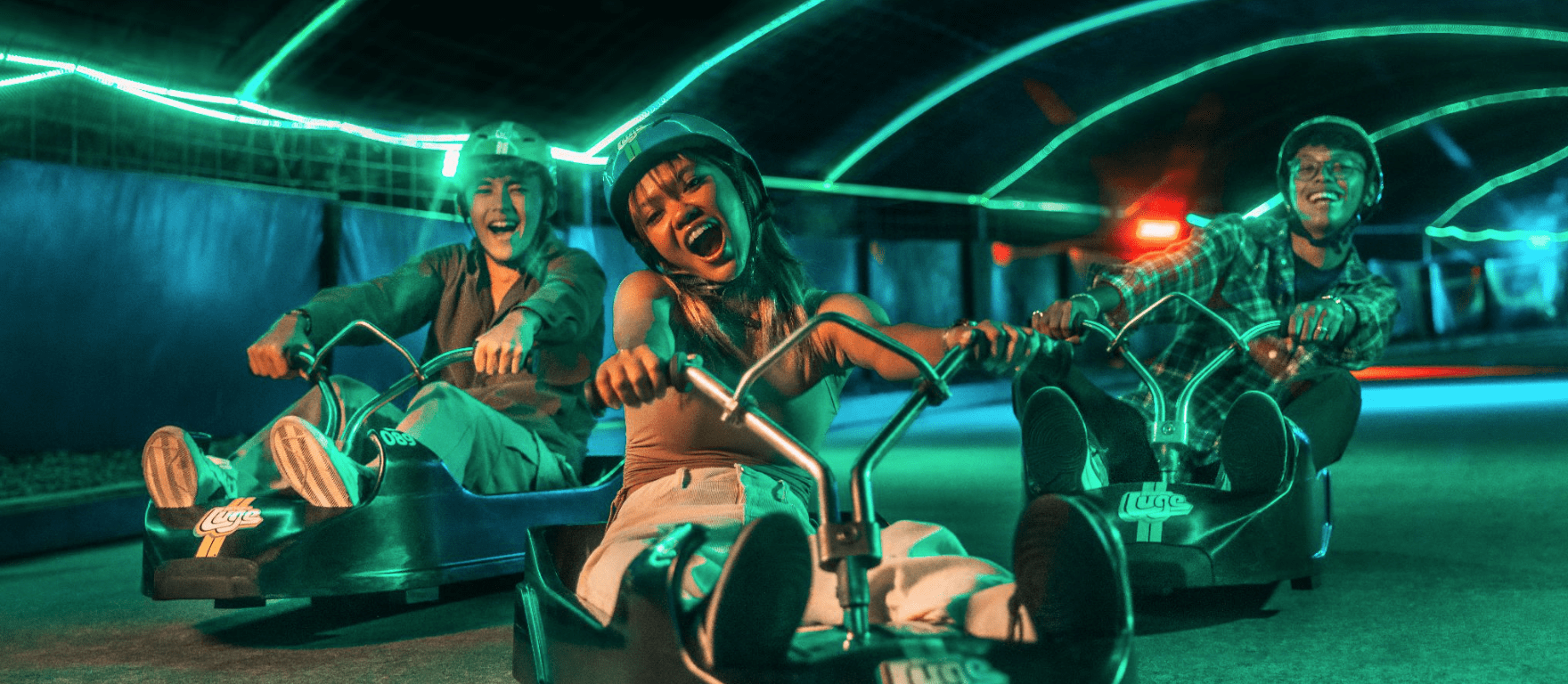 Pick your path and get set for an adrenaline-fueled ride through twists, turns and pure excitement! Skyline Luge Singapore offers 2.6km of downhill fun split between four thrilling Luge tracks. Each track has specially designed features that include curvy corners and exhilarating tunnels that will have you grinning from ear to ear. Choose between the Expedition Trail or the Jungle Trail for the best musical experience during your ride. The moment you push off from the starting point to embark on your chosen track, you’re instantly enveloped in a sensory symphony that electrifies the air. The neon-lit tracks carve through the darkness, casting a mesmerising glow that guides your descent.