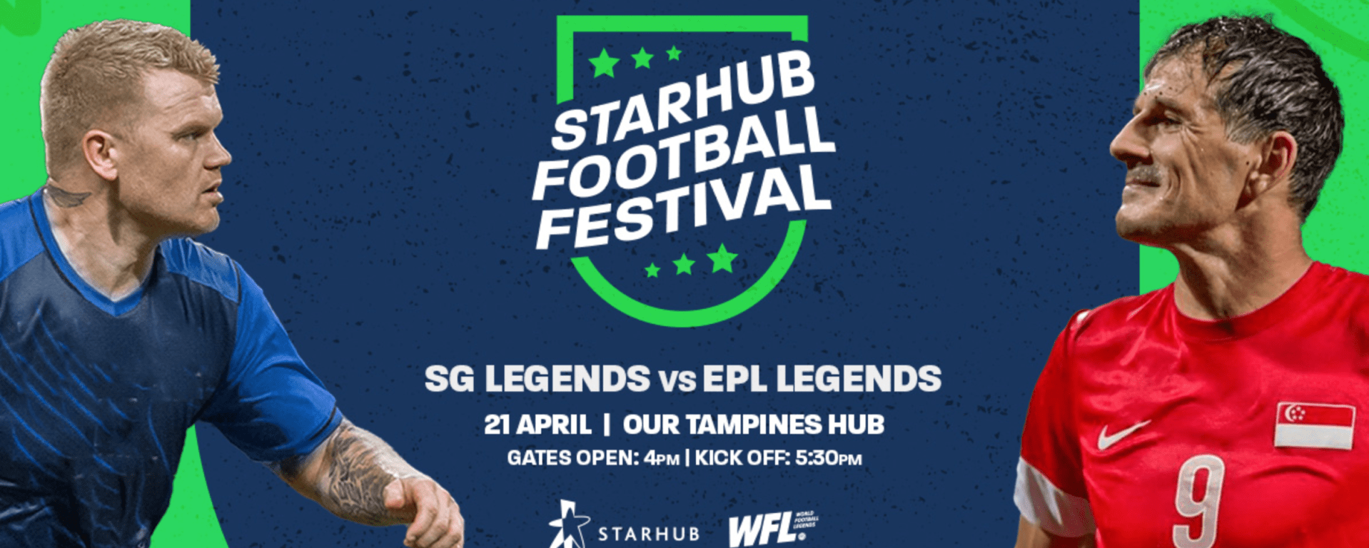 StarHub Football Festival takes place on 20th and 21st April 2024 at Our Tampines Hub. Tickets to SG Legends vs EPL Legends on 21st April available here