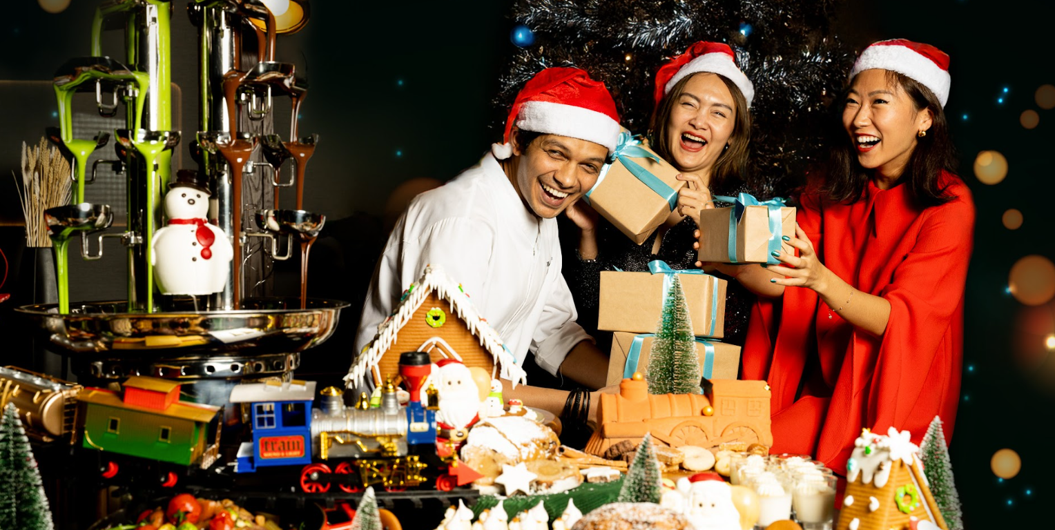 Indulgent live stations feature festive favourites like Roasted Turkey and Whole Roasted Barramundi, alongside a premium Japanese selection including piping hot Tonkotsu Ramen and a variety of sashimi and maki. Other highlights include the signature “Pulled”-man Pork, a Salad Lab with international and regional produce, and hot dishes such as Red Wine-Braised Beef Cheek and Roasted Butter Corn Fed Chicken. To sweeten the experience, diners can delight in the Chef’s choice of five dessert canapés, two decadent Christmas cakes, log-style and whole, a chocolate fondue with assorted toppings, and a gelato trolley.