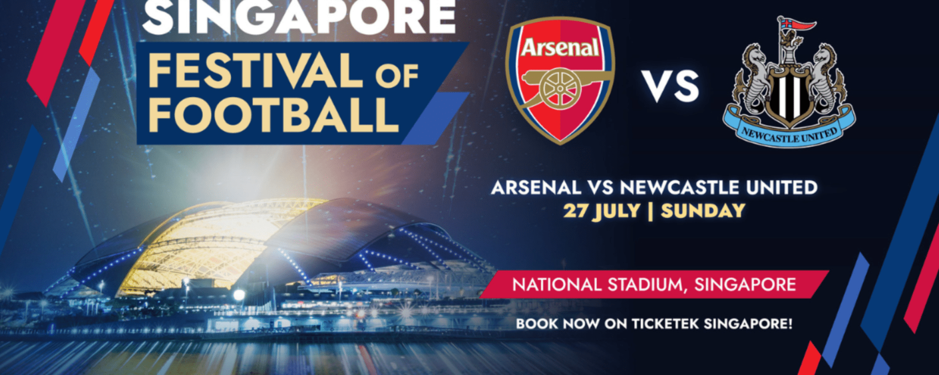 Capping off a week-long celebration of football, fans in Singapore are in for a blockbuster finale as Arsenal FC take on Newcastle United FC at the National Stadium. The Singapore Festival of Football concludes with a clash between two of the Premier League’s most ambitious clubs: newly-crowned Carabao Cup champions Newcastle, returning to Singapore for the first time since 1996, and last season’s Premier League runners-up Arsenal, who are back for a second match in front of their growing Asian fanbase.