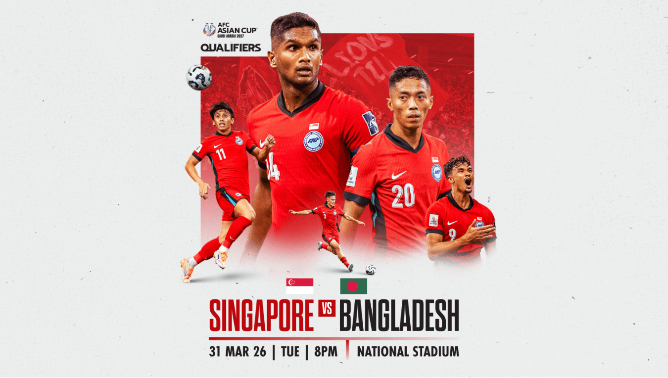 The Singapore Men’s National Team are set to face Bangladesh in the final match of their AFC Asian Cup Saudi Arabia 2027 qualifiers campaign at the National Stadium. The match will kick off at 8pm, on Tuesday, 31 March, with tickets available for purchase online via Ticketek and the FAS website.