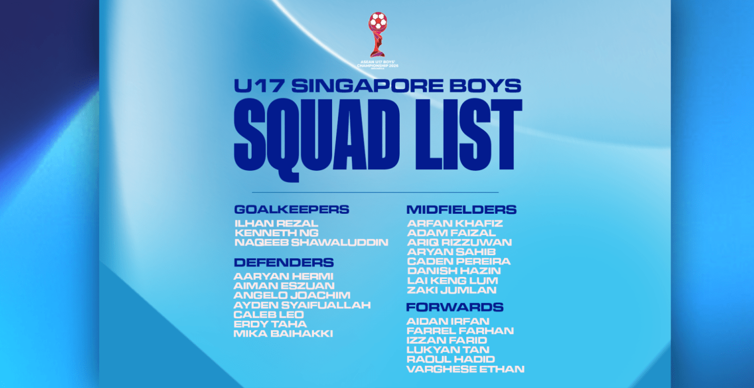 The Singapore Under-17 Boys’ squad for the ASEAN Football Federation (AFF) Under-17 Championship in Surabaya, Indonesia, set to take place from 11 to 24 April 2026, has been finalised.